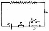 9、如图所示电路,多匝线圈的电阻和电池的内电阻可以忽略,两个电阻器的阻值都是R,电键K原来打开着,电流