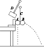 (4分)图为《研究平抛运动》的一个演示实验装置图,图中C为弹性铁片,它位于B球的左面并夹紧A球,开始时两球均静止,当小锤D下摆时打击铁片C,使B球做平抛运动,同时使A球自由下落,对该实验出现的现象或应得出的结论是(不考虑空气的阻力) ( )