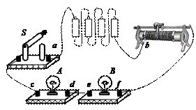(10分)右图是某同学连接的实验实物图,合上开关S后,发现A、B灯都不亮,他采用下列两种方法检查故障: