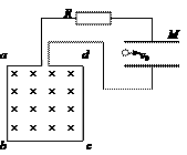 (14分)如图所示,矩形线圈abcd共1000匝,线圈长ab=0.5 m,宽bc=0.4 m,垂直穿出线圈平面的匀强磁场的磁感应强度以5 T/s的速率均匀减小,线路电阻R=10 kW,平行金属板M、N之间的距离d=2 cm,电子流以恒定速度v0=3´107m/s不断地射入两板之间,速度方向和板平行(重力不计),问: