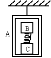 B和C分别固定在弹簧两端,放在吊篮的水平底板上静止不动,