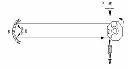 一九二三年美国物理学家迈克耳逊用旋转棱镜法较准确的测出了光速,其过程大致如下,选择两个距离已经精确测量过的山峰(距离为L),在第一个山峰上装一个强光源S,由它发出的光经过狭缝射在八面镜的镜面1上,被反射到放在第二个山峰的凹面镜B上,再由凹面镜B反射回第一个山峰,如果八面镜静止不动,反射回来的光就在八面镜的另外一个面3上再次反射,经过望远镜,