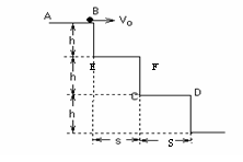 (10分) 如图所示,三个台阶每个台阶高h=0.225米,宽s=0.3米。小球在平台AB上以初速度v0水平向右滑出,要使小球正好落在第2个平台CD上,不计空气阻力,求初速v0范围。某同学计算如下:(g取10m/s2)
