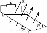 21(12分)足够长的光滑平行金属导轨,二导轨间距L=0.5m,轨道平面与水平面的夹角为θ=30°,导轨上端接一阻值为R=0.5Ω的电阻,其余电阻不计,轨道所在空间有垂直轨道平面的匀强磁场,磁感应强度B=1T.有一不计电阻的金属棒ab的质量m=0.5kg,放在导轨最上端,如图所示.当ab棒从最上端由静止开始自由下滑。
