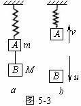 物体A和B用轻绳相连挂在轻质弹簧下静止不动,如图5-3a所示。