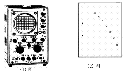 (2)如图,有一位同学在做“研究平抛物体的运动”实验时,在白纸上记下了7次同一小球从轨道同一高度释放做平抛运动的轨迹点,如图中“×”所示;用重锤线确定了抛出点O在竖直方向所在直线上的两个点,如图中“·”所示。不过,由于粗心,在从木板上取下白纸前,他忘了记下抛出点O的位置。