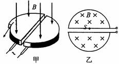 24.(20分)在高能物理研究中,粒子回旋加速器起着重要作用,如图甲为它的示意图。它由两个铝制D型金属扁盒组成,两个D形盒正中间开有一条窄缝。两个D型盒处在匀强磁场中并接有高频交变电压。图乙为俯视图,在D型盒上半面中心S处有一正离子源,它发出的正离子,经狭缝电压加速后,进入D型盒中。在磁场力的作用下运动半周,再经狭缝电压加速。如此周而复始,最后到达D型盒的边缘,获得最大速度,由导出装置导出。已知正离子的电荷量为q,质量为m,加速时电极间电压大小为U,磁场的磁感应强度为B,D型盒的半径为R。每次加速的时间很短,可以忽略不计。正离子从离子源出发时的初速度为零。
