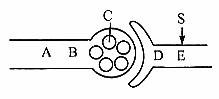 A. 若于S处给予刺激,则在A处可测到电位差的变化