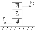 3、甲、乙、丙三个立方体木块重量均为10牛,叠放在一起放在水平地面上,各接触面之间的摩擦系数相同,均为μ=0.2,F1=1牛,方向水平向左,作用在甲上,F2=1牛,方向水平向右,作用在丙上,如图所示,地面对甲的摩擦力大小为f1,甲对乙的摩擦力大小为f2,