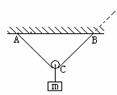 如图,一根轻绳两端固定在水平杆上AB两点,光滑轻滑轮连一物体挂在绳上,在不改变绳长的情况下,改变悬点B的位置.下列说法正确的是:( )