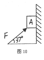 (13分)如图所示,物体A重10N,物体与竖直墙的动摩擦因系数为0.4,用一个与水平方向成37°角的力F作用在物体上,要使物体A沿墙作匀速运动则该力的大小为多大?(g取10m/s2,sin37°=0.6,结果保留两位有效数字)