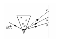 17、如图所示,一细束白光通过三棱镜折射后分为各种单色光,取其中的a、b、c三种色光,并分别让这三种色光通过同一双缝干涉实验装置在光屏上产生干涉条纹,比较这三种色光的光子能量以及产生的干涉条纹间距大小,下面说法正确的是( )
