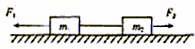 16、(8分)如图所示,两个用轻线相连的位于光滑水平面上的物块,质量分别为m1和m2,拉力F1和F2方向相反,与轻线沿同一水平直线,且F1>F2。试求在两个物块运动过程中轻线的拉力T。