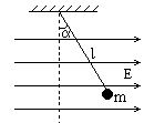 18、(10分)如图所示,一条长为l的细线,上端固定,下端拴一质量为m的带电小球.将它置于一匀强电场中,电场强度大小为E,方向是水平的.已知当细线离开竖直位置的偏角为α时,小球处于平衡.