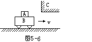 3、如图5-6所示,物体A置于小车B上,A与B之间光滑无摩擦。它们以共同的速度v前进。突然碰到障碍物C,将A从车上碰了出去,A被碰回的速度大小也是v。问:小车B的速度将怎样变化?