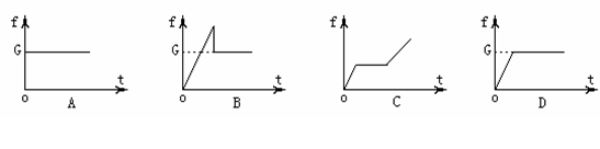 10、把一重为G的物体,用一个水平的推力F=kt(k为恒量,t为时间)压在竖直的足够高的平整的墙上,从t=0开始物体所受的摩擦力f随t的变化关系是图中的哪一个?( )