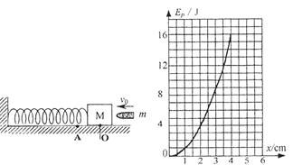 弹簧的自然长度为L0,受力作用时的实际长度为L,形变量为x,x=|L-L0|.有一弹簧振子如图所示,放在光滑的水平面上,弹簧处于自然长度时M静止在O位置,一质量为m=20g的子弹,以一定的初速度v0射入质量为M=1.98kg的物块中,并留在其中一起压缩弹簧,且射入过程时间很短.振子在振动的整个过程中,弹簧的弹性势能随弹簧的形变量变化的关系如图所示.(g取10m/s2)则
