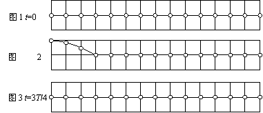 (1)(4分)细绳的一端在外力作用下从t=0时刻开始做简谐运动,激发出一列简谐横波。在细绳上选取15个点,图1为t=0时刻各点所处的位置,图2为t=T/4时刻的波形图(T为波的周期)。在图3中画出t=3T/4时刻的波形图。