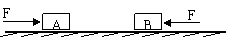 如图所示,将两个大小均为F,同时分别作用在两个置于光滑平面上的物体A、B上。A、B两个物体质量分别为mA、mB,且mA>mB。经相同距离(但两物体还没有发生接触)后,撤去两个力,此后两物体相碰撞并粘在一起,这时两物体一起