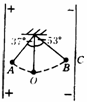 的绳线悬挂在平行板电容器之间,两板电压为40V,板间距10cm,小球在A点处于平衡状态悬线和竖直方向夹角为37°.问: