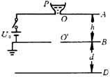 19.三块相同的金属平板A、B、D自上而下水平放置,间距分别为h和d,如图所示.A、B两板中心开孔,在A板的开孔上搁有一金属容器P,与A板接触良好,其内盛有导电液体.A板通过闭合的电键K与电动势为U0的电池正极相连,B板与电池负极相连并接地.容器P内液体在底部小孔O处形成质量为m,带电量为q的液滴后自由下落,穿过B板的开孔O′落到D板上,其电荷被D板吸附,液体随即蒸发.接着容器底部又形成相同的液滴自由下落,如此继续.设整个装置放在真空中.