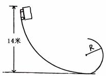 19.过山翻滚车是一种常见的游乐项目。如图是螺旋形过山翻滚车的轨道,一质量为100kg的小车从高为14m处由静止滑下,当它通过半径为R=4m的竖直平面内圆轨道的最高点A时,对轨道的压力的大小恰等于车重,小车至少要从离地面多高处滑下,才能安全的通过A点?(g取10m/s2)(15分)