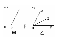 (1)他以小桶及小桶内的砝码的总重力作为细线对小车的拉力F,测出不同拉力F对应的加速度a值,并把各数据标在a-F坐标系上,发现它们都在一条直线的附近,这条直线不过坐标原点,如图(甲)所示,而与横坐标轴交于F1点,产生这种情况的原因是什么?