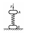 如图所示,物体A的质量为mA,物体B的质量为mB,弹簧的倔强系数为k,用外力F作用在物体A上,把弹簧压缩到一定程度,突然撤去外力F时,物体B能离开地面,求要使撤去F后物体B能离地开面,F至少为多大?(10分)