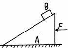 如图所示,将质量为m的物体B放在质量为M的光滑的斜面A上,当A在水平力F的作用下在光滑水平面上作匀加速直线运动时,B物体恰好不下滑,试求斜面A的加速度及外力F的大小?(14分)