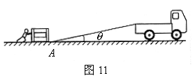 某人欲将质量m=2.0×102kg的货箱推上高h=1.0m的卡车,他使用的是一个长L=5.0m的斜面(斜面与水平面平滑连接),如图11所示。假设货箱与水平面和斜面的动摩擦因数均为μ=0.10,此人沿平行于地面和斜面对货厢所施的最大推力均为Fm=4.0×102N。为方便计算可认为cosθ≈1,g取10m/s2。