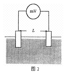 3A.为了利海洋资源,海洋工作者有时根据水流切割地磁场所产生的感应电动势来测量海水的流速。假设海洋某处地磁场竖直分量为B=0.5×10-4T,水流是南北流向,如图2所示,将两电极竖直插入此处海水中,且保持两电极的连线垂直水流方向。若两电极相距L=20m,与两电极相连的灵敏电压表读数为U=0.2mV,则海水的流速大小为