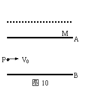 20.(12分)如图10所示,两带电平行板水平放置,两板间形成匀强电场。两板相距为d,两板电势差为U,一带电粒子质量为m(重力不计)、所带电量为q,从两板左端中点P以速度V水平射入匀强电场中,试求: