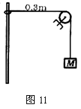 21.(12分)轻绳一端挂一质量为M的物体,另一端系在质量为m的圆环上,圆环套在竖直固定的细杆上,定滑轮与细杆相距0.3m,如图11所示,将环拉至与定滑轮在同一水平高度上,再将环由静止释放,圆环沿杆向下滑动的最大位移为0.4m,若不计一切摩擦阻力,求: