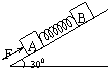 如图所示,质量相等的A、B两物体在平行于固定斜面的推力F的作用下,沿光滑斜面匀速运动。A、B间轻弹赞的劲度系数为k,斜面的倾角为300,则弹簧的压缩量为