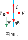 如图30-1所示,虚线上方有场强为E的匀强电场,方向竖直向下,虚线上下有磁感强度相同的匀强磁场,方向垂直纸面向外。ab是一根长L的绝缘细杆,沿电场线放置在虚线上方的场中,b端在虚线上。将一套在杆上的举正电小球从a端由静止释放后,小球先是加速运动,后是匀速运动则达b端。已知小球与绝缘杆间的动因摩擦数μ=0.3,小球的重力可忽略不计。当小球脱离杆进入虚线下方后,运动轨迹是半圆,圆半径为L/3。求:带电小球以 a到b运动过程中克服摩擦力做的功与电场力所做功的比值。