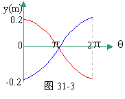 可见,在记录纸上的点以振幅0.20m,周期T=2π/ω=1秒而作简谐运动。因圆筒每秒转2周(半秒转1周),故在1秒内,纸上的图形如图31-3所示。