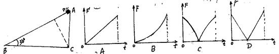 8.如下图所示,由质量不计轻质杆加工成的直角三角形框架,BC边水平放置,整个装置可绕垂直于纸面过C点的轴转动。AB杆光滑,其上穿有质量为M带孔的重物P。现从A点释放重物使之沿AB杆无摩擦下滑,为保持三角形框架静止,在B点施加一竖直方向的力F。在重物P下滑过程中,力F的大小随时间