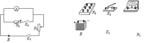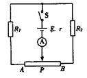 12、图(甲)中E为电源,其电动势为E,R1为滑线变阻器,R2为电阻箱,A为电流表,用此电路,经以下步骤可近似测得A的内阻RA:①闭合K1,断开K2,调节R1,使电流表读数等于其量程I0;②保持R1不变,闭合K2;调节R2,使电流表读数等于