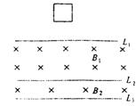 (16分)如图所示,虚线L1、L2之间是磁感应强度为B1的匀强磁场,虚线L2、L3之间是磁感应强度为B2的匀强磁场,L1、L2、L3都水平,L2、L3高度差为a。质量为m、边长为a的正方形线框自某一高度由静止下落,依次经过两匀强磁场区域。已知L1、L2间高度为2a,线框在进入B1的过程中做匀速运动,速度大小为v1,在B1中加速一段时间后又匀速进入和穿出B2,进入和穿出B2时的速度恒为v2,求: