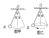 最大摆角为θ,B作匀速圆锥摆运动,锥的顶角为2θ,θ<100,则A、B两球运动的周期