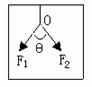 两弹簧秤上的示数分别为F1、F2与橡皮条的伸长方向夹角为θ,当保持F1的大小不变,使θ增加,问要使结点O保持不变,F2的大小方向应如何变化?