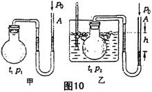 时压强计两管的水银面相平,乙图表示把烧瓶