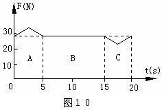 9、(6分)某同学利用DIS实验系统研究电梯的运动。在电梯中挂一重物,用力传感器测出悬绳的拉力。得到如图10所示的F-t图象。