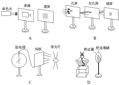 15、(5分)人类对光的本性认识的过程中先后进行了一系列实验,如图所示的四个示意图所表示的实验不能说明光具有波动性的是: ( )