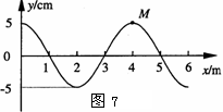 7.如图7所示是一列简谐横波t = 0时刻的图象,质点M位于波峰位置.经过Δt = 0.4 s时间,第一次重复出现图示的波形.根据以上信息,下列说法正确的是 ( )