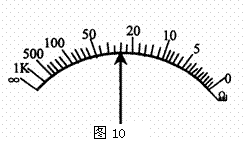 ( 1 )用多用电表进行粗测:多用电表电阻档有三种倍率,分别是×100、 ×10和 ×1 . 该同学选择 ×100倍率,用正确的操作方法测量,刻度盘上的指针如图10所示,那么测量结果是_______ Ω.