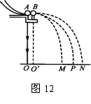 12、(9分)“验证动量守恒定律”的实验装置如图12所示,让质量为m1的小球从斜槽上某处滚下与静止在支柱上质量为m2的小球发生正碰,请回答以下问题: