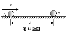 (14分)如图,质量分别为m、4m的带同种电荷的小球A和B放在光滑的绝缘平面上。开始B固定,A以一定的速度正对着B运动,当两者相距为d时迅速释放B,而此时A的速度为v,加速度为a。经一段时间后,A、B相距最近时B球的加速度也为a,求: