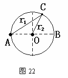如图22所示,在半径为R=45m的圆心O和圆周A处,有两个功率差不多的喇叭,同时发出两列完全相同的声波,且波长