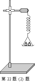 (2)(9分)在“研究弹力和弹簧伸长的关系”的实验中,某同学将弹簧的一端固定在铁架台上,另一端挂一只小盘,铁架台的竖直杆上固定一个可以上下移动的标志物,作为计时标志,让小球在竖直方向离开平衡位置放手后,小盘在竖直方向做简谐运动(此装置也称竖直弹.簧振子),如图所示,这位同学想用在“探究弹力和弹簧伸长的关系”的实验中所学的科学方法,探究此竖直弹簧振子做简谐运动的周期T与质量m的关系。